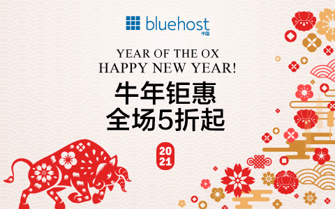 • [网站服务器] Bluehost金牛贺岁,春节送豪礼! 日期:2021-02-07 10:04:24 点击:71 好评:0