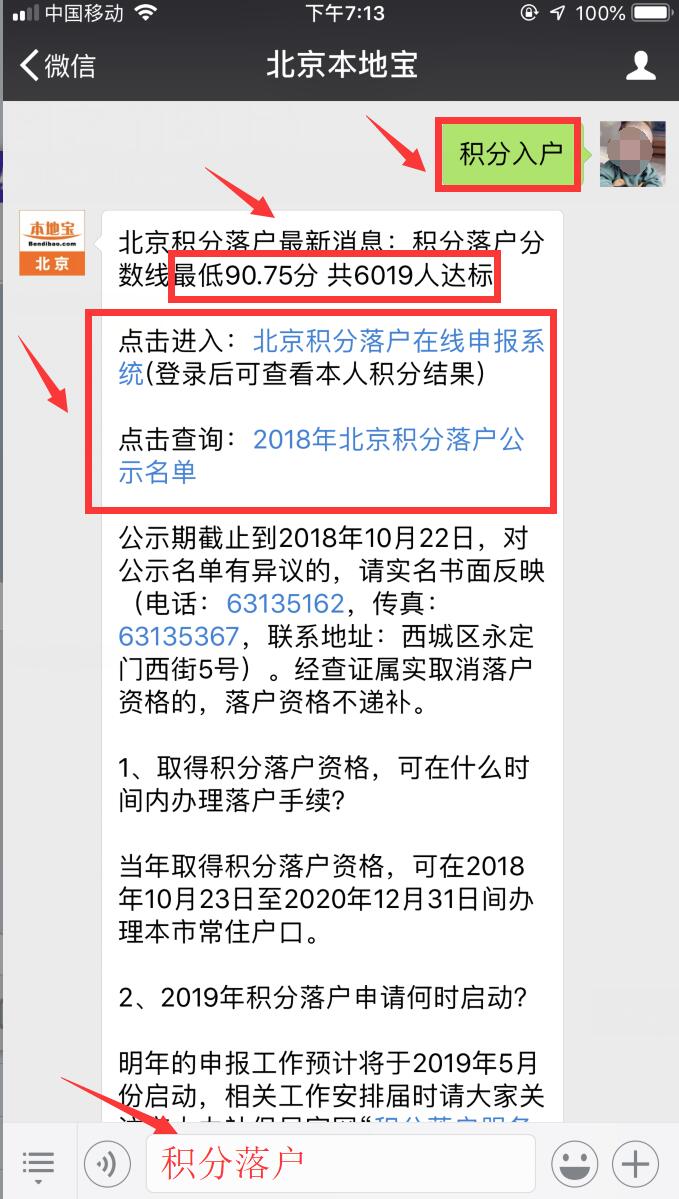 扫描下方二维码或者微信搜索“北京本地宝”公众号(ID:bdbbeijing),关注后在对话框回复【积分落户】可在手机上查询2018年北京积分落户公示名单、本人积分结果、北京积分落户最新消息、北京积分落户分数线及北京积分落户申请网站/条件/流程等常见问题解答指南。