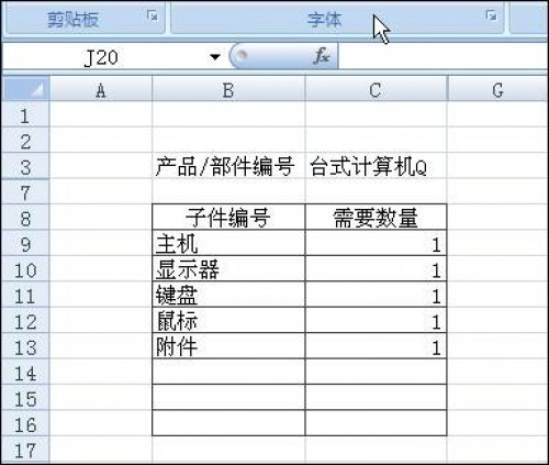 至此,一个简单的台式计算机BOM数据表就完成了,当然此表还可以不断增加层级,通过此例我们发现,勤哲Excel服务器在实现BOM表的功能方便确实达到了适应变化、灵活简便的特性。