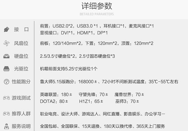 作为一款游戏主机,大家最关心当然是这款主机显卡方面的性能如何,3499主机搭载的是一款七彩虹GTX1050Ti-4GD5显卡,性能仅次于GeForce?GTX1060,详细参数大家可以看下图。并且更有配置直接免费升级为GeForce?GTX10605GD5显卡,加量不加价!