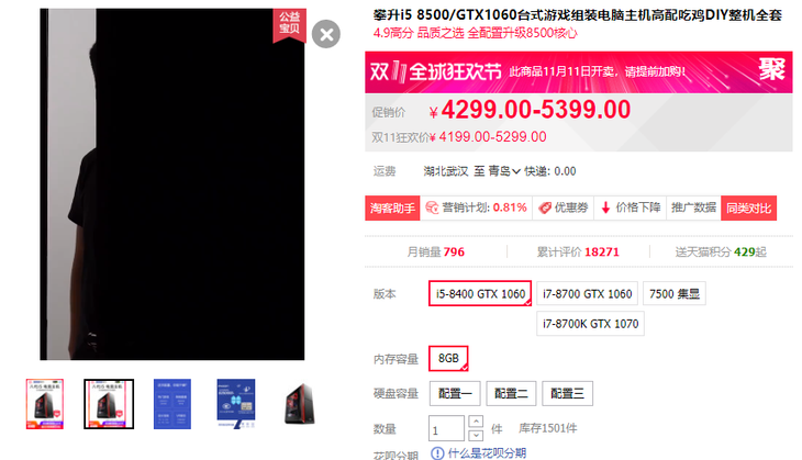 知名组装机品牌攀升兄弟推出了一款非常具有性价比的游戏主机,双11售价4199元起,多种配置可选。攀升天猫旗舰店双11狂欢价格直降、配置免费升级、送电脑外设,还有更多惊喜。有意购买游戏主机的小伙伴不要错过。 攀升i5 8500/GTX1060台式游戏组装电脑主机 参考价4199元【购买链接】