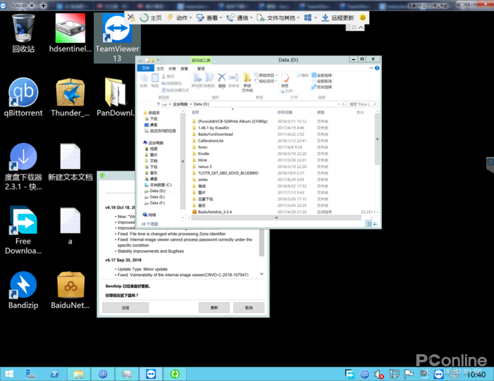 可以看到,TeamViewer可以用一个窗口完整显示远程PC的完整桌面,在当中使用各种下载软件,自然也不成问题。想要下载BT、电骡、Steam游戏等等,只需要在远程的PC预先安装好各类下载器即可。而在TeamViewer的远程窗口中,你还可以使用一些手段提速减少延迟,例如不显示壁纸,经过一番设置后,远程操作各类下载软件不成问题。