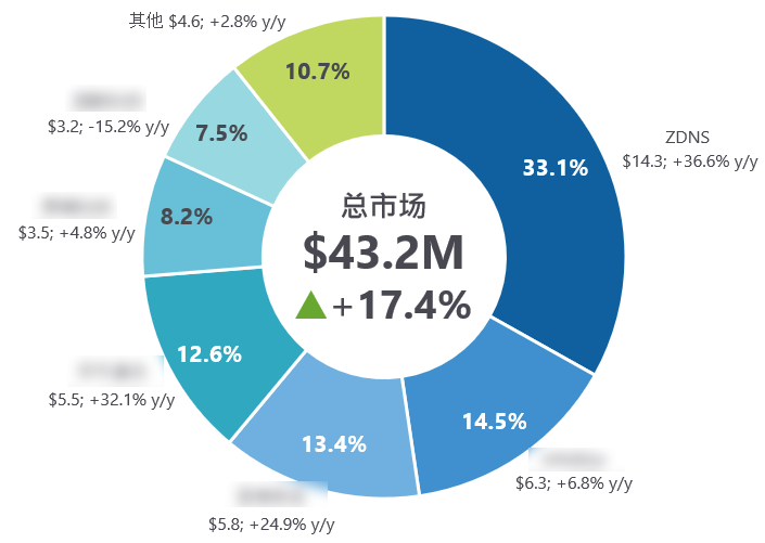 【慧聪通信网】近日,IDC官方网站正式发布了行业报告《中国DDI市场份额研究,2017:金融、政府、教育通信行业驱动市场快速增长》。报告显示,“2017年中国DDI市场同比2016年增长17.4%,金融、政府、教育和通信等行业驱动市场快速增长。受益于自主可控政策以及本地化优势,国内厂商增速更快”。其中,互联网域名系统工程研究中心(简称域名工程中心,ZDNS)以33.1%的市场份额,位居中国DDI市场第一名,这是继2015年、2016年后,域名工程中心连续第三年稳居中国DDI市场第一;同时域名工程中心以36.6%的收入增长率,位居中国市场第一,市场增速远超国外厂商。