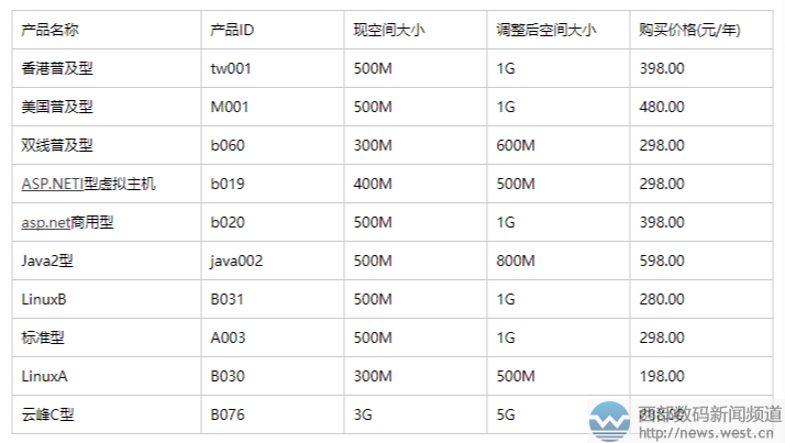 调整涉及型号:香港/美国/双线普及型云虚拟主机、虚拟主机(含商用型)以及Java2型、云峰C型、Linux A/B型与标准型虚拟主机,调整后的空间更大、支持容纳更多的程序与文件,同时实付价格保持不变,具体详情如下。