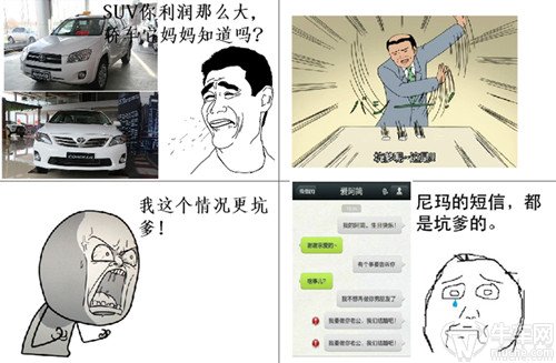 我告诉你吧,看了千万别吐血,同级别的轿车和SUV产品相比,在制造成本上SUV最多比轿车多10%,如果成本控制得好,这个数字是6%;但在定价策略上,SUV产品的溢价率比轿车高20%,只贵20%,你相信么?照各车型官方指导价的起步价计算,RAV4的起步价比同平台同级别的卡罗拉贵了70%。本田的CR-V比思域贵了59%,大众途观高尔夫贵了64%,福特翼虎更离谱,比起福克斯贵出94%,差不多要翻番了,看到木有,水分多多滴,一般国人都是跟风、爱面子、随大流,所以都是钱多得没处花,纷纷效仿别人去买SUV,此时,我只想说,你愿意当山炮吗???