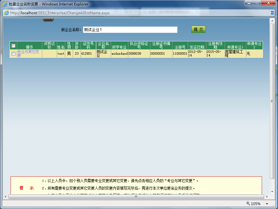 注:企业名称变更必须是企业内所有已注册人员全部处于无业务状态才可以提交申请。所谓无业务状态:包含没有初始注册的申请,所有人员均不在业务流程中。