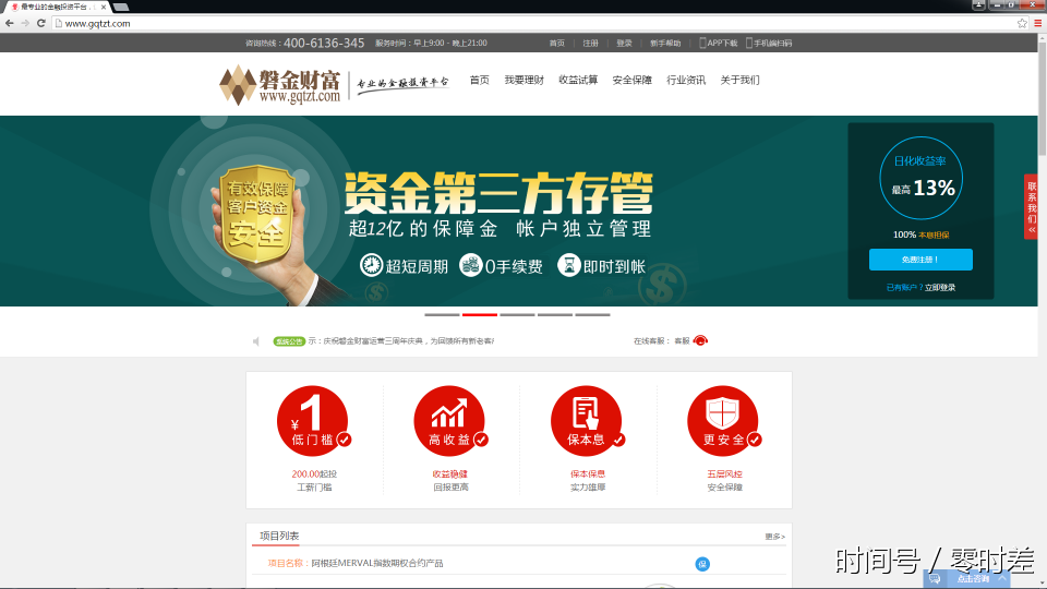 在行业监管日益趋严、日息平台风险频发的背景下,部分互联网金融企业仍然潜藏风险。北京时间“零时差”注意到,今日,国家互金专委会发布“全国互联网金融阳光计划”第六周关于部分互联网金融网站服务器部署在境外的巡查公告。公告显示,2017年7月中旬,国家互联网金融风险分析技术平台(以下简称“技术平台”)巡查发现,部分面向国内用户的互联网金融网站服务器部署在境外,并且其中部分网站未备案或涉嫌虚假备案,部分项目预期收益率畸高。具体如下: “桂海融资租赁”官网()(见下图)发布了“国际环境伦敦金HUI指数”、“冀北青秦皇岛新区项目”等互联网资产管理产品。技术平台发现该网站相关业务面向中国境内用户,但其服务器部署在美国。(提醒:技术平台发现此网站未备案,且其所宣称的收益率畸高,部分项目预期日化收益率超5%)。