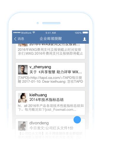 企业邮箱使用者,根据自己的需要,它支持移动顾客端,可以利用手机执行邮件的收发,切实完毕移动化办公,为企业员工的工作带给了更大的便利。自由分配和管理内部员工的邮箱帐号,根据员工的部门、职能的不同设置邮箱空间、类别、组群,还可根据企业的发展随时添加、删除用户。员工离职时,企业回收邮箱并保存邮箱内的业务通信信息,从而保证业务活动的连贯性。