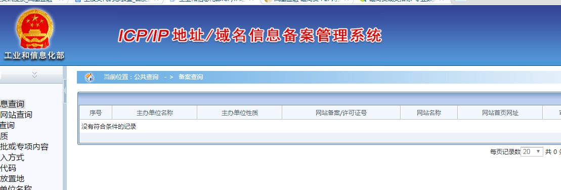 怀着好奇心,我们在工信部域名ICP备案管理系统()中查询了该平台的备案号,显示查无此号,切换域名查,依旧如此。