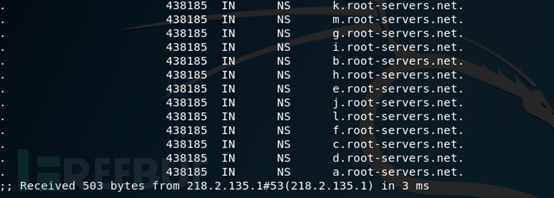第一步是向我这台机器的ISPDNS(218.2.135.1)获取到根域服务区的13个IP和主机名。