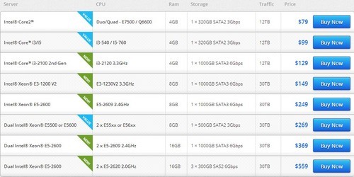 买电脑看配置,买服务器看配置,租用服务器同样要看配置。同一款系列的服务器,配置不同,性能和价格会相差很多。虽 然英特尔今年推出了全新的Sandy Bridge至强E5处理器和Ivy Bridge至强E3-1200v2处理器,但服务器租用市场上大部分还是上一代的产品机型。包括基于至强E5500和E5600的机架服务器,甚至还有提供基于双核奔腾和四核酷睿的机型。考虑到业务承载的重要性,笔者强烈建议选购基于企业级专用的至强系列服务器(极少部分采用AMD皓龙),并且不失扩展性。也就是说,选配置的首要原则是看稳定性和扩展性,其次要考虑兼容性,避免服务器内部某些配件为廉价组件而暴露兼容性和性能瓶颈问题。
