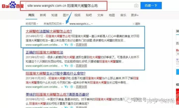 2、最终页:长尾关键词 (一般长尾关键词都布局最终页,比如之前我写王氏阳澄湖大闸蟹案例时,阳澄湖大闸蟹怎么吃这个词就在文章页里)