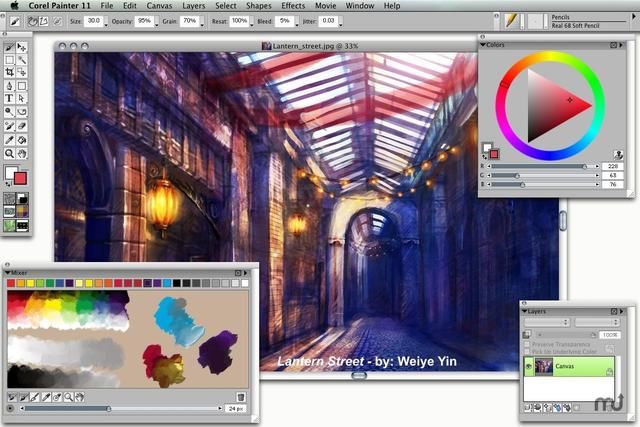 painter:数码素描与绘画工具的终极选择,是一款极其优秀的仿自然绘画软件,拥有全面和逼真的仿自然画笔。它是专门为渴望追求自由创意及需要数码工具来仿真传统绘画的数码艺术家、插画画家及摄影师而开发的。它能通过数码手段复制自然媒质(NaturalMedia)效果,是同级产品中的佼佼者,获得业界的一致推崇。